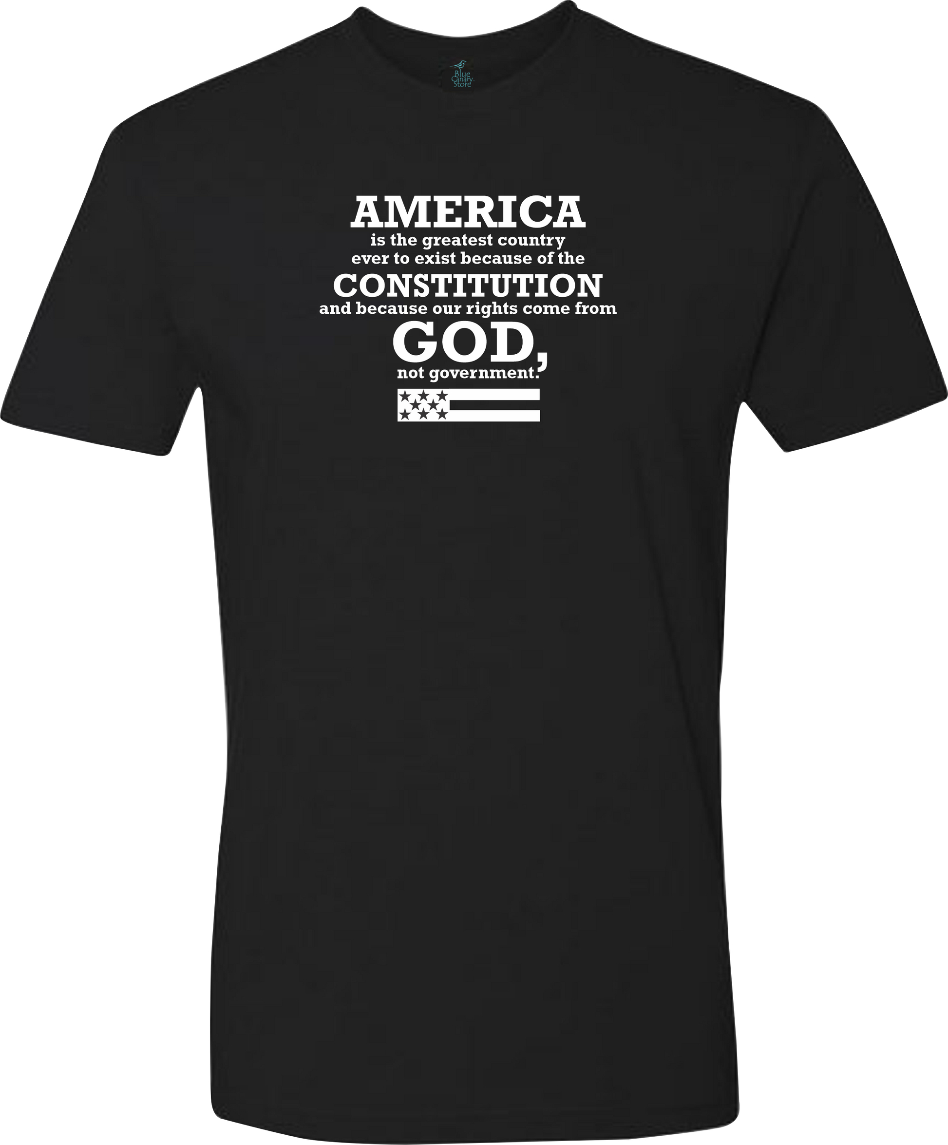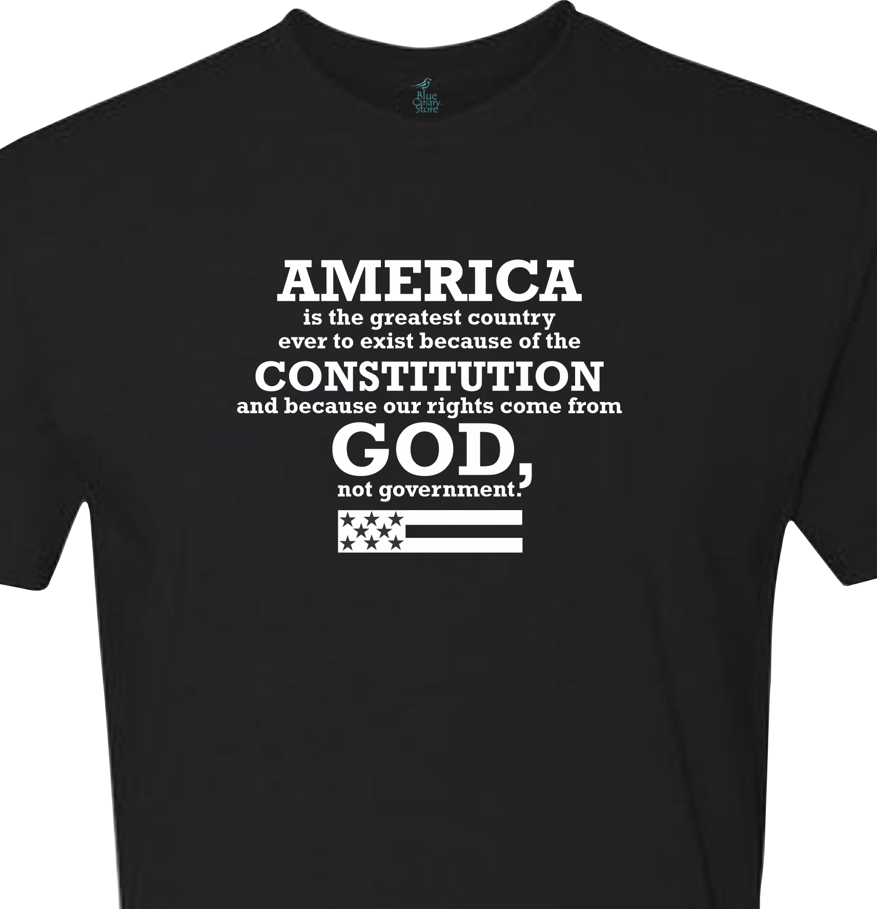 T-Shirt - America is the greatest country ever to exist because of the Constitution and because our rights come from God, not government.
